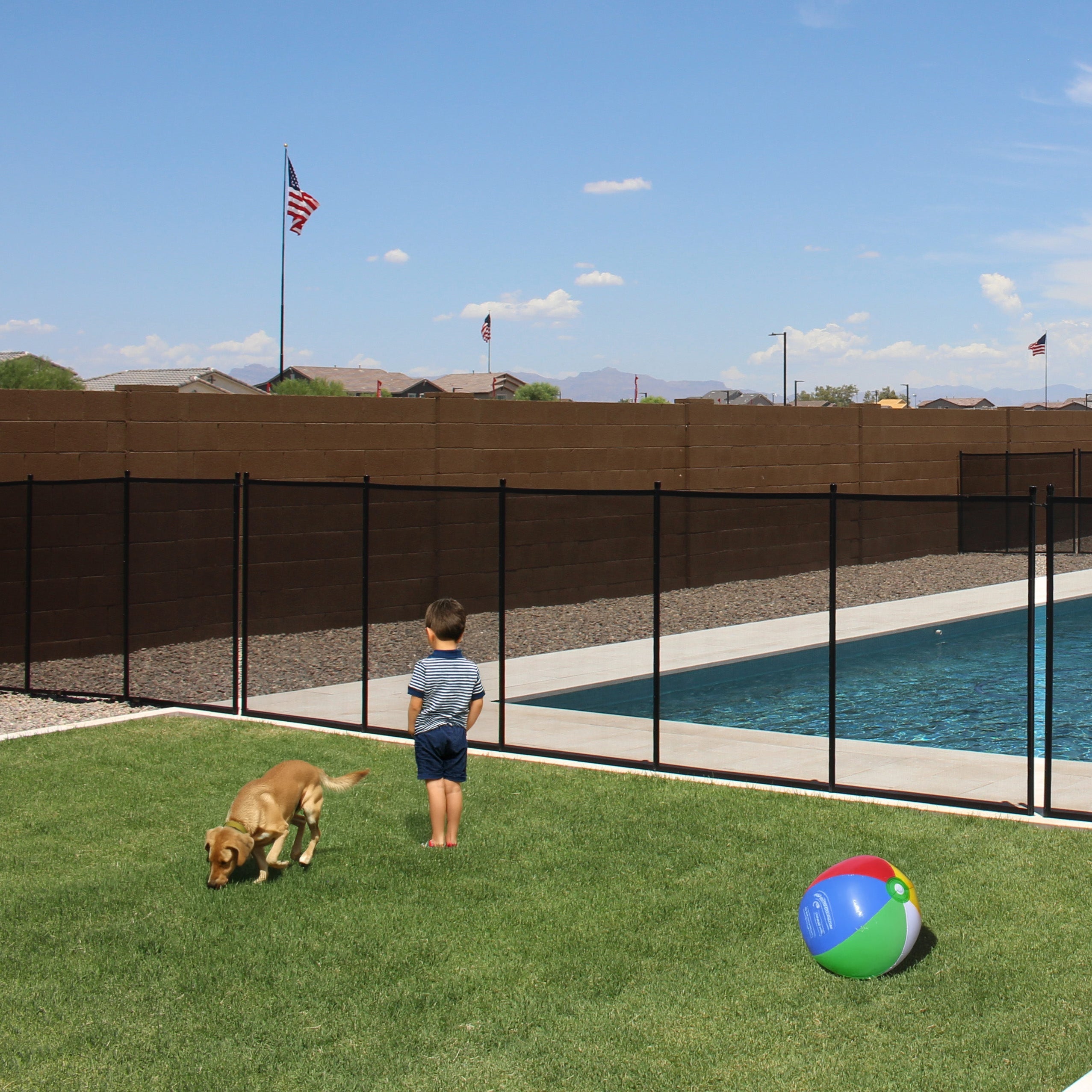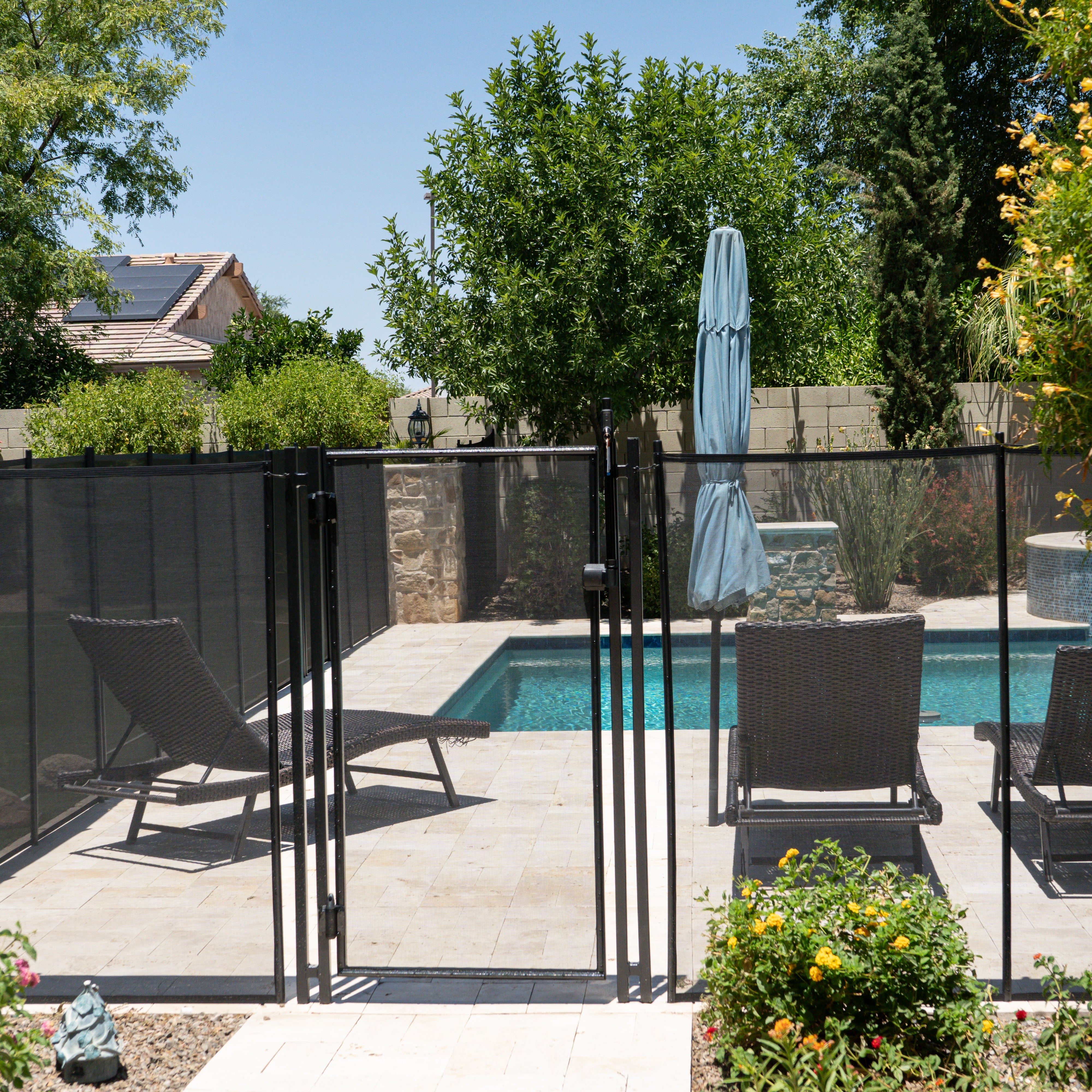 Our fences are customizable and removable. We also offer a self-latching gate with a key for an extra layer of added protection.